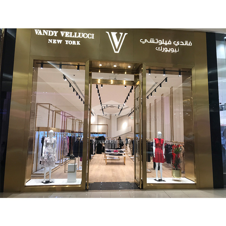 สำหรับการออกแบบร้านค้านี้: วัสดุหลัก: สแตนเลสพร้อมสีที่กำหนดเองด้วยไฟฟ้า ฐานไม้อัดกันไฟพร้อมสีที่กำหนดเอง