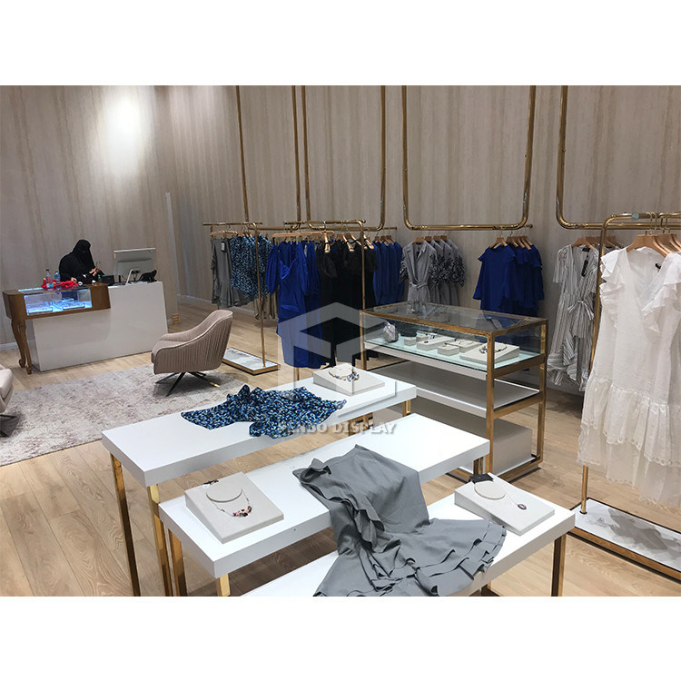 คุณสามารถดูร้านขายเสื้อผ้าผู้หญิงสีทองและสีขาวเหล่านี้จะเหมาะกว่ามากสาวๆคงจะหลงใหลในสีสันที่สดใสและแวววาวเหล่านี้นอกจากนี้ ยังสามารถแยกชุดประกอบเพื่อประหยัดพื้นที่คอนเทนเนอร์บางส่วนเพื่อประหยัดค่าขนส่งบางส่วนคุณสามารถวางร้านค้าได้สามหรือห้าร้านในครั้งเดียวเพื่อประหยัดค่าใช้จ่ายในการนำเข้าจำนวนมากสำหรับธุรกิจร้านค้าในเครือของคุณ